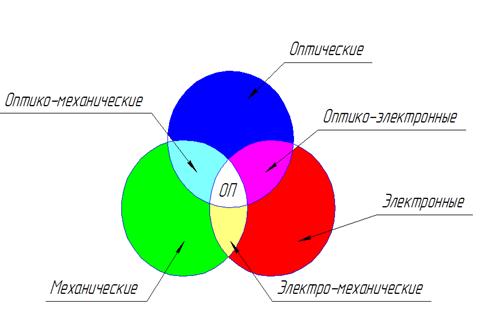 На рисунке 3 изображен состав современного ОП, основанного на оптических, механических и электронных (электрических) функциональных устройствах и их сочетании.