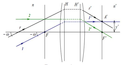 Главные точки Н и Н’ – это точки пересечения главных плоскостей с оптической осью.