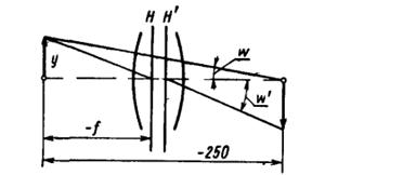 нахождении предмета в фокальной плоскости tg ω′= -y/ f= y/ f′