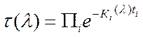 где: i-номера цветных стекол, составляющих светофильтр, кi(l)-показатель поглощения цветных стекол с индексом, соответствующим номеру цветного стекла, ti-толщина соответствующих цветных стекол.