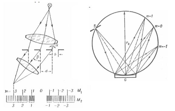 - вогнутая дифракционная решетка штрихи нанесены на вогнутую (обычно сферическую) поверхность.