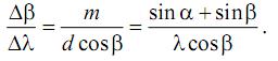 - угловая дисперсия β/Δλхарактеризующая угловую ширину спектра, для данной λ не зависит or параметров решетки, а зависит только от углов α и β и возрастает с увеличением β: