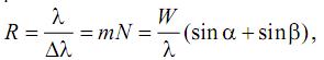 - разрешающая способность R измеряется отношением λ к наименьшему интервалу длин волн Δλ, который еще может разделить решетка: