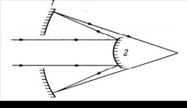 1-вогнутое вторичное зеркало,2-выпуклое главное зеркало.