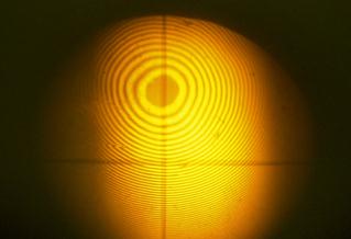 Невооружённый глаз может оценить величину dz/z~0,l, что соответствует величине обнаруженного дефекта dh=l/20 (при l=0,633 мкм, dh=0,031 мкм). Знак отклонения позволяет отличить тип дефекта: углубление или выступ. Если контролируемая поверхность имеет форму сферы, то интерференционные полосы имеют форму концентрических окружностей (см. Ньютона кольца). В интерферометре Физо поверхности контролируемой и эталонной пластинок из-за малости угла (угл. секунды) почти полностью соприкасаются друг с другом и в процессе юстировки могут быть повреждены. Поэтому для контроля поверхностей часто используются бесконтактные интерферометры, построенные по схеме интерферометра Майкельсона.