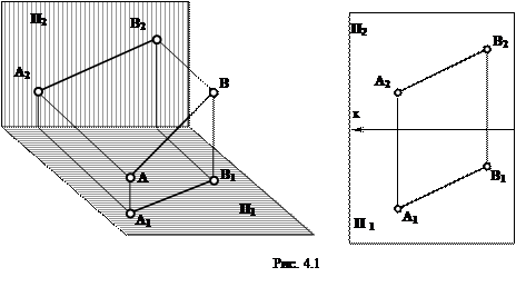 4.2.1 Прямая не параллельная и не перпендикулярная ни к одной из плоскостей проекций называется прямой общего положения (рис. 4.1).