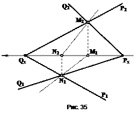 В том случае, если прямые являются прямыми уровня, т.е. прямые параллельны одной из плоскостей проекций, первый этап решения опускается и преобразование начинается со второго этапа.