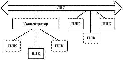 Информация с локальных контроллеров может направляться в промышленную сеть непосредственно, либо через контроллеры верхнего уровня – концентраторы (см. рис 4).