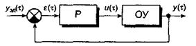 Регулятор (Р) с помощью элемента сравнения определяет отклонение текущего значения регулируемого параметра от заданного значения и формирует командный сигнал в соответствии с заложенным в нем алгоритмом регулирования. Сигнал, формируемый регулятором, по мощности не всегда достаточен, чтобы управлять ИУ, поэтому регулятор часто снабжается усилителем мощности.