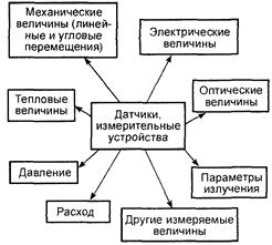 Рис. 12. Классификация первичных измерительных преобразователей (датчиков) по виду измеряемой величины
