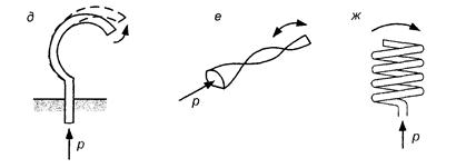 а — плоская диафрагма; б — гофрированная диафрагма; в — мембрана (анероидная коробка); г — сильфон; д — одновитковая трубка Бурдона; е — скрученная или спиральная трубка Бурдона; ж — многовитковая трубка Бурдона