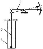 Схема дилатометрического термометра представлена на рис. 60. Термометр состоит из трубки /, изготовленной из металла с большим коэффициентом линейного расширения (меди, латуни, алюминия), и стержня 2 из материала с малым коэффициентом линейного расширения (инвара, фарфора). Один конец трубки крепится неподвижно к корпусу прибора, а к другому жестко прикреплен стержень. Сама трубка помещается в среду, температуру которой измеряют. Изменение температуры среды приводит к изменению длины трубки, а длина стержня остается практически постоянной. Это приводит к перемещению стержня, который с помощью рычага 3 перемещает стрелку по шкале прибора.