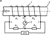 — термоконвективный с совмещенными нагревателем и термопреобразователями (/ — двухсекционный нагреватель; 2 — трубопровод; 3 — измерительный прибор;