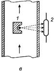 -излучения плотномера относительно трубопровода диаметром d < 0,2 м (а), d = 0,2...0,3 м (б) и d > 0,3 м (в)