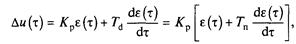 Качество регулирования в ряде случаев можно повысить, вводя в закон регулирования составляющую, пропорциональную первой производной (скорости изменения) входной величины регулятора, т. е. Д-составляющую.