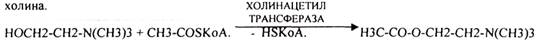В покое натрий удаляется из клетки, и мембрана становится проницаемой для калия. Калий выходит из клетки и внутри клетки наблюдается положительный потенциал - ПП (70мВ) При возбуждении натрий -калиевые каналы открываются, натрий заходит в клетку, калий выходит из клетки. Но т.к. концентрация натрия снаружи больше, его в клетку заходит больше. Это приводит к понижению отрицательного заряда внутри клетки и мембрана деполяризуется. Это и есть начало передачи импульса по мембране. ОБРАЗОВАНИЕ НЕЙРОМЕДИАТОРОВ. В ХОЛИНЕРГИЧЕСКИХ синапсах основной медиатор - АЦЕТИЛХОЛИН. Образуется из холина.