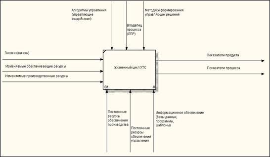 На рисунке 5 представлена диаграмма IDEF0 верхнего уровня декомпозиции бизнес-процесса «жизненный цикл ХТС».