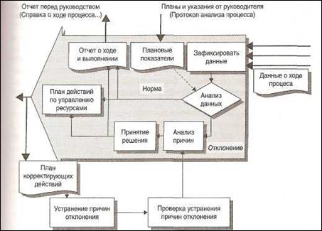 В случае, если отклонение полученных результатов от плановых показателей превышает установленные для этого показателя границы, необходимо: – зафиксировать факт отклонения; – провести анализ причин отклонения; – оценить технологическую и организационно-экономическую целесообразность корректировки процесса; – запросить дополнительные ресурсы, если это необходимо для организации процесса управления; – организовать процесс устранения причины отклонения и разработать мероприятия по предупреждению отклонений; – задокументировать процесс организации и результаты управления.