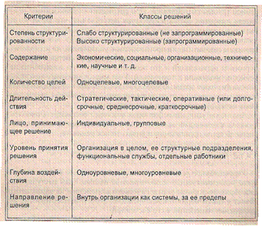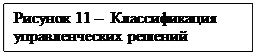 Для снижения размерности задачи управления и алгоритмизации процедуры её решения используется классификация решений. Классификация позволяет выделить класс задачи и найти методы решений, целенаправленно используя методики моделирования процессов принятия решений (рисунок 11).