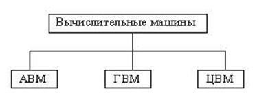 По принципу действия вычислительные машины делятся на три больших класса (рис. 5.1): аналоговые (АВМ), цифровые (ЦВМ) и гибридные (ГВМ).