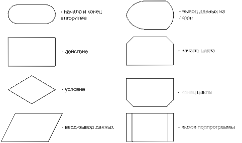 Блок-схемой называется графическое изображение логической структуры алгоритма, в котором каждый этап процесса обработки информации представляется в виде геометрических символов (блоков), имеющих определенную конфигурацию в зависимости от характера выполняемых операций. Перечень символов, их наименование, отображаемые ими функции, форма и размеры определяются ГОСТами.
