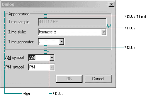 (1 DLU = 2 пикселя (мелкий шрифт),