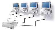Локальная вычислительная сеть (ЛВС) представляет собой коммуникационную систему, позволяющую совместно использовать ресурсы компьютеров, подключенных к сети, такие, как принтеры, плоттеры, диски, модемы, приводы CD-ROM и другие периферийные устройства. В локальных вычислительных сетях компьютеры расположены на расстоянии до нескольких километров и обычно соединены при помощи скоростных линий связи со скоростью обмена от 1 до 10 и более Мбит/с (не исключается случаи соединения компьютеров и с помощью низкоскоростных телефонных линий). ЛВС обычно развертываются в рамках некоторой организации (корпорации, учреждения). Поэтому их иногда называют корпоративными системами или сетями. Компьютеры при этом, как правило, находятся в пределах одного помещения, здания или соседних зданий.