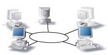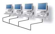 При кольцевой топологии данные передаются от одного компьютера другому по эстафете (Рис. 23). Если некоторый компьютер получает данные, предназначенные не ему, он передает их дальше по кольцу. Адресат предназначенные ему данные никуда не передает.