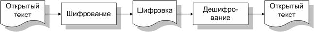Процесс любого шифрования представляется следующей обобщенной схемой (Рис. 28):