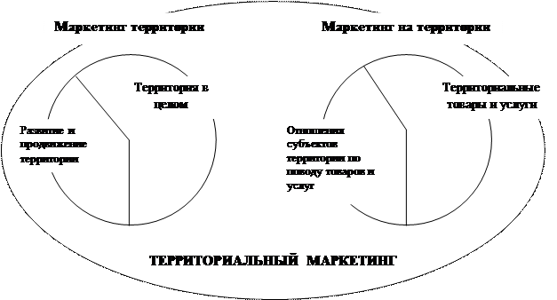 Категория «территориальный маркетинг» является более общей. Территориальный маркетинг - это самостоятельный вид маркетинга, которому присущи специфика объекта исследования, применимость маркетинговой философии к деятельности по управлению территорией. Учитывая специфику объекта применения маркетинга, мы корректируем методы, инструменты, тактические приемы маркетинговых действий. Территория как самостоятельный объект, область применения маркетинга как системы мышления и системы действий также предполагает уточнение всего комплекса маркетинговых средств и выделение специфики ряда понятий.