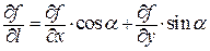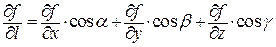 , где справа в формуле стоит скалярное произведение градиента функции и единичного вектора направления.