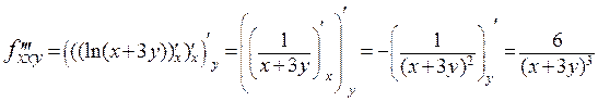 Для того, чтобы вычислить ту же производную с помощью MAXIMы, воспользуемся командой diff(log(x+3*y),x,2,y,1).