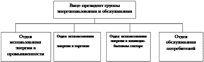 · ОСУ, ориентированная на потребителя (представители фирмы по производству и распределению электроэнергии). Некоторые организации производят большой ассортимент товаров и услуг, которые отвечают запросам нескольких крупных групп потребителей или рынков. Каждая группа или рынок имеет четко определенные или специфические потребности. Если два или более таких клиента становятся очень важными для фирмы, она может использовать организационную структуру, ориентированную на потребителя. Эта структура, при которой все ее подразделения группируются вокруг определенных групп потребителей. Цель такой структуры состоит в том, чтобы удовлетворить этих потребителей так же хорошо, как и организация, которая обслуживает всего одну их группу. Особое преимущество такой структуры состоит в том, что она позволяет специалистом быть более чуткими в отношении потребностей особых потребительских групп. Часто это дает организации преимущество в предвидении новых потребностей клиентов и позволяет реагировать на них лучше и быстрее, что очень важно в условиях конкуренции. ОСУ, ориентированная на потребителя находит все большее применение издательстве, образовании