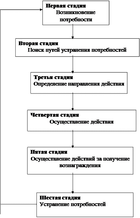 Мотивация, рассматриваемая как процесс, теоретически может быть представлена в виде шести следующих одна за другой стадий.