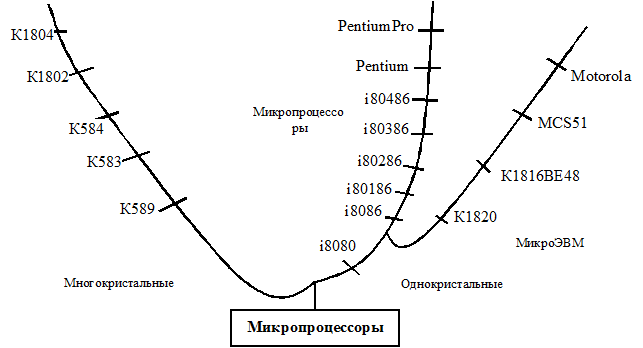 Рис. 1.1. Микропроцессоры (дерево развития)