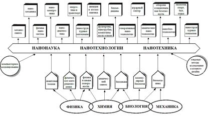 Принципиальной особенностью нанотехнологии является междис-циплинарность, и во всех своих проявлениях нанонаука выступает в качестве объединяющего начала в физике, химии, биологии, материаловедении, вычислительной технике, информационных технологиях, электронике и т.д.