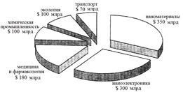 Предполагается, что основными секторами рынка продукции нанотехнологий в ближайшее время станут следующие: наноматериалы, наноэлектроника, фармацевтика и медицина, химическая промышленность, экология, транспорт, рис. 3.