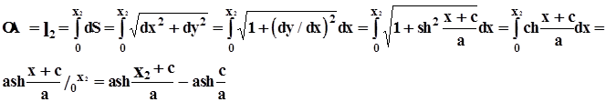 В частном случае, когда часть цепи лежит на грунте и цепная линия в точке 0 касается оси х, проекция цепной линии на ось х равна