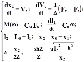 По характеристикам электродвигателя w(М) и w(I) находим w(t+Dt) и I(t+Dt).