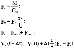 где Fвоз=const, а Fвод=f(Vтеч) т.к. Vс(0)=0.