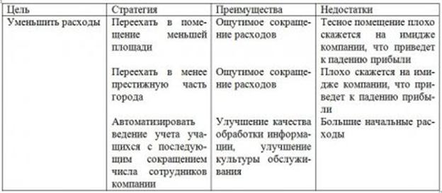 Далее следует провести анализ и выбор стратегий (средств достижения целей), для чего можно построить соответствующую таблицу.