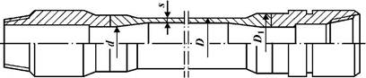 Механические свойства труб должны соответствовать группе прочности Д. Наружная и внутренняя поверхности высаженной части труб и места перехода от высаженной части к гладкой части труб не должны иметь резких уступов и складок; переход от высаженной части к гладкой должен быть плавным по всей длине. На внутренней поверхности высаженной части труб (до приварки замков) на длине 40 мм от торца незаполнение металлом не допускается; на длине более 40 мм допускается одно пологое незаполнение металлом шириной не более 40 мм.