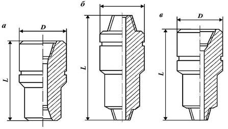 а - муфтовый; б - ниппельный; в - переходный