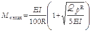 На искривленном участке скважины в произвольном сечении бурильной колонны, растягиваемой усилием Qр, Н (кгс), наибольший изгибающий момент, Mи max, Н·м (кгс·м), имеет место около бурильного замка (или протектора) и определяется по следующим приближенным формулам: