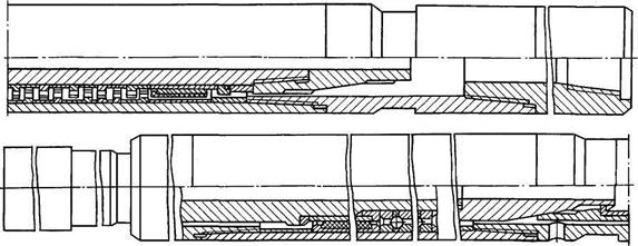 Во ВНИИБТ разработаны турбобуры с полым валом (рис. 7.4), предназначенные для бурения скважин шарошечными и алмазными долотами в сложных горно-геологических условиях. Турбобур состоит из турбинных секций и шпинделя. В зависимости от условий эксплуатации возможно использование от трех до шести турбинных секций для обеспечения требуемой характеристики турбобура.