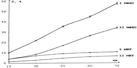 В таблице 2.1 приведены результаты определения природы основы на высвобождение пироксикама из суппозиториев. Гидрофильная (полиэтиленоксидная) основа обеспечивает более чем в 2 раза интенсивное высвобождение вещества сравнительно с традиционной промышленной (заводской) основой. Гидрофильная основа оказалась преимущественней масла какао (в 1,5 раза) и основы витепсол (в 1,9 раза).