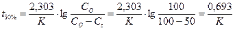Исходя из полученного уравнения рассчитывают еще один параметр фармацевтической доступности - период полувысво-бождения (t50%):
