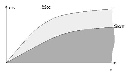 Планиметрическим способом вычисляются площади под кинетическими кривыми высвобождения (растворения) вещества из исследуемого лекарства Sx и для стандартного (сравниваемого) лекарства Sст. Соотношение площадей Sx к Sст выраженное в процентах носит название степени фармацевтической доступности (СФД):