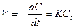dC - изменение концентрации исходного вещества во времени; знак "-" указывает на уменьшение количества реагирующего вещества во времени;