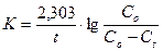 Константа скорости реакции первого порядка вычисляется по уравнениям: